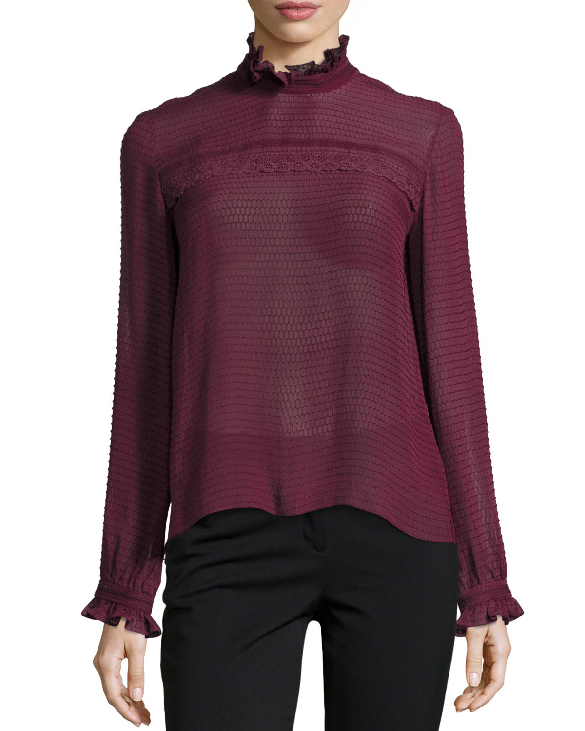 Emile-D Ruffle Long-Sleeve Top, Dark Plum