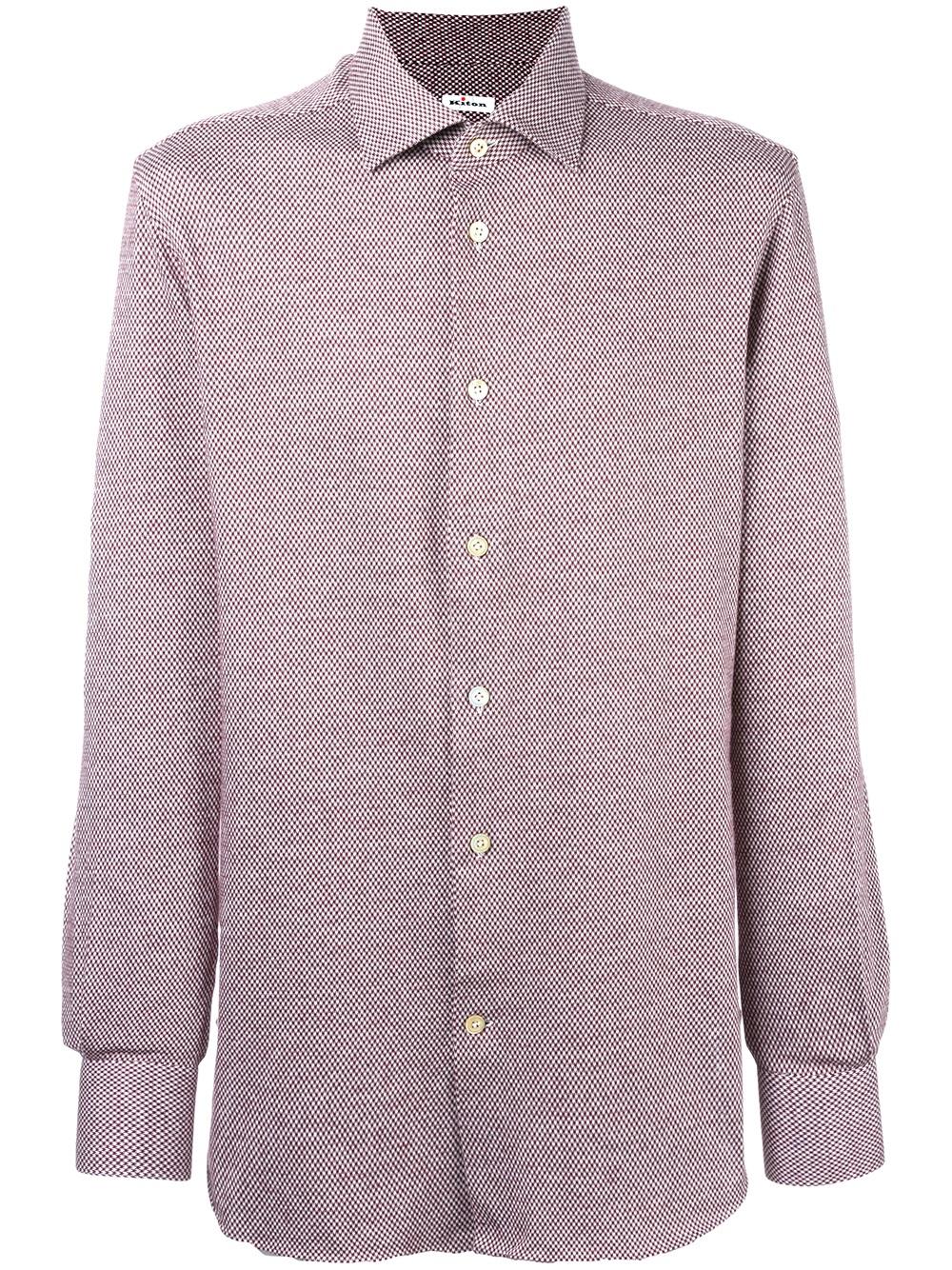 - Kiton 红色 全棉 千鸟格纹衬衫。