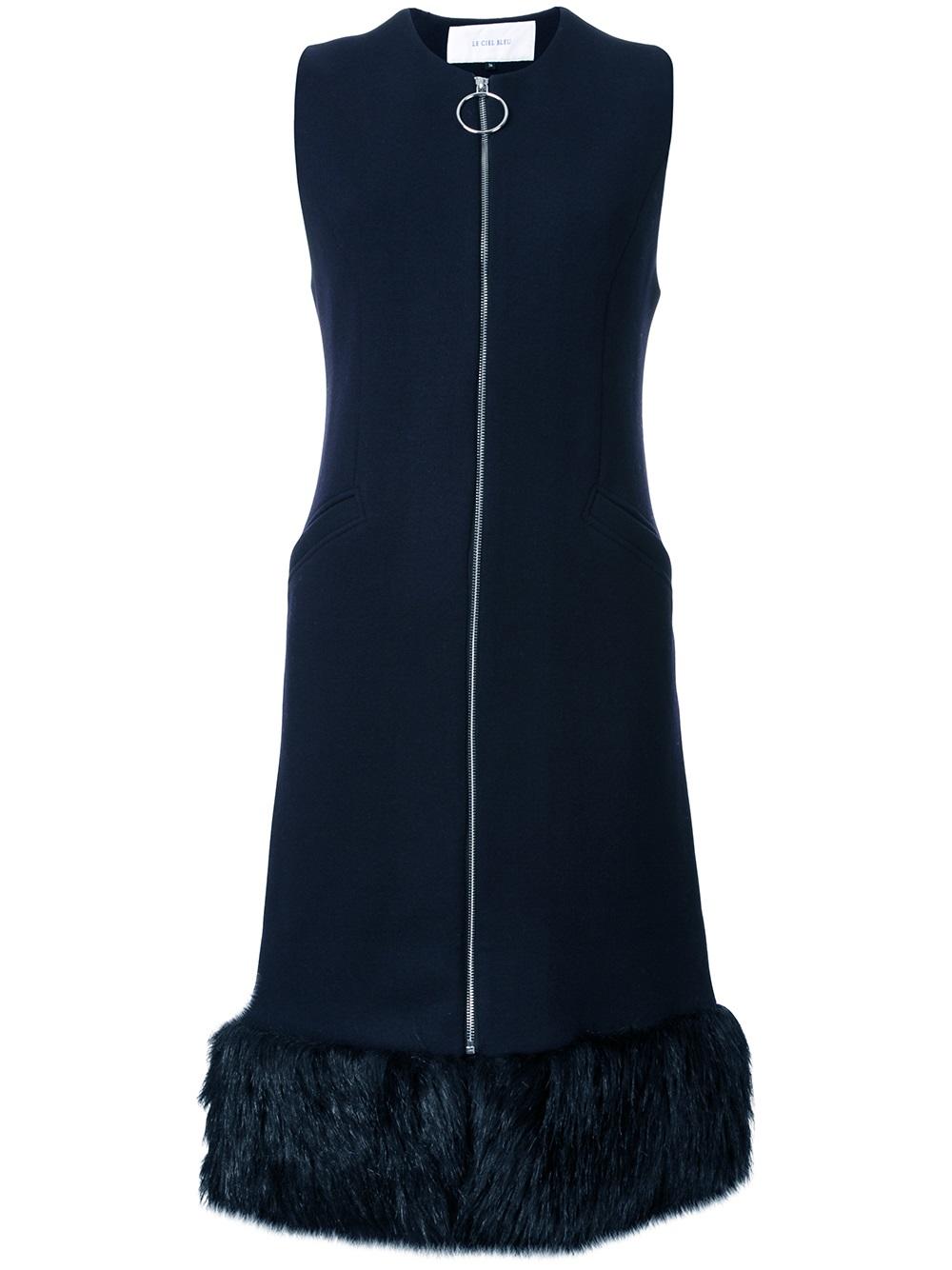 - Le Ciel Bleu 海军蓝 羊毛 皮毛边饰连衣裙。