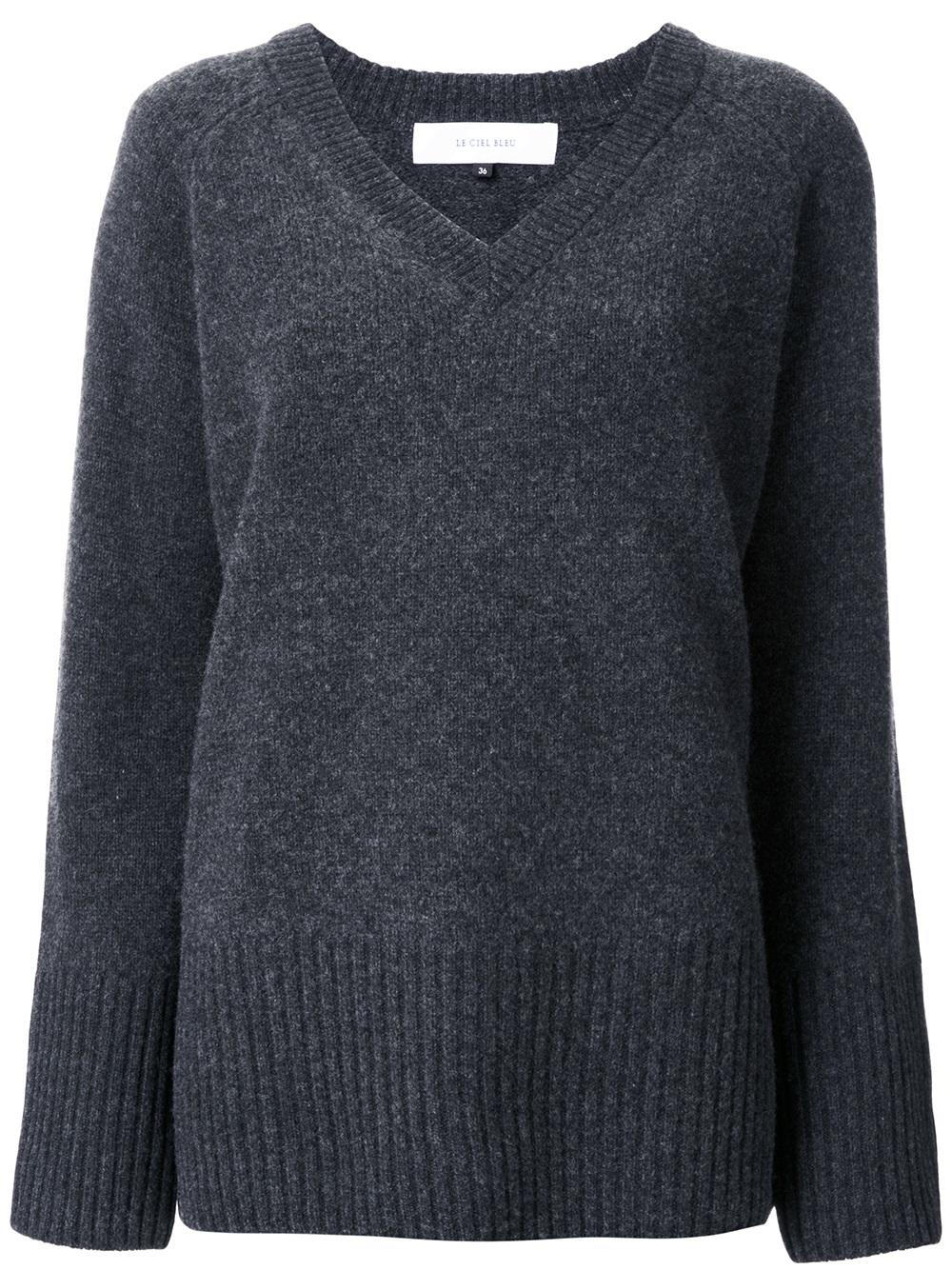 - Le Ciel Bleu 灰色 羊毛 'Boiled V-neck'毛衣。
