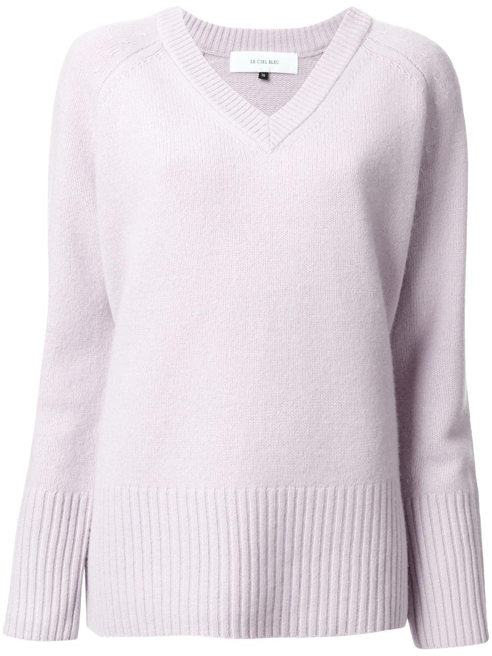 - Le Ciel Bleu 粉红色 羊毛 'Boiled V-neck'毛衣。