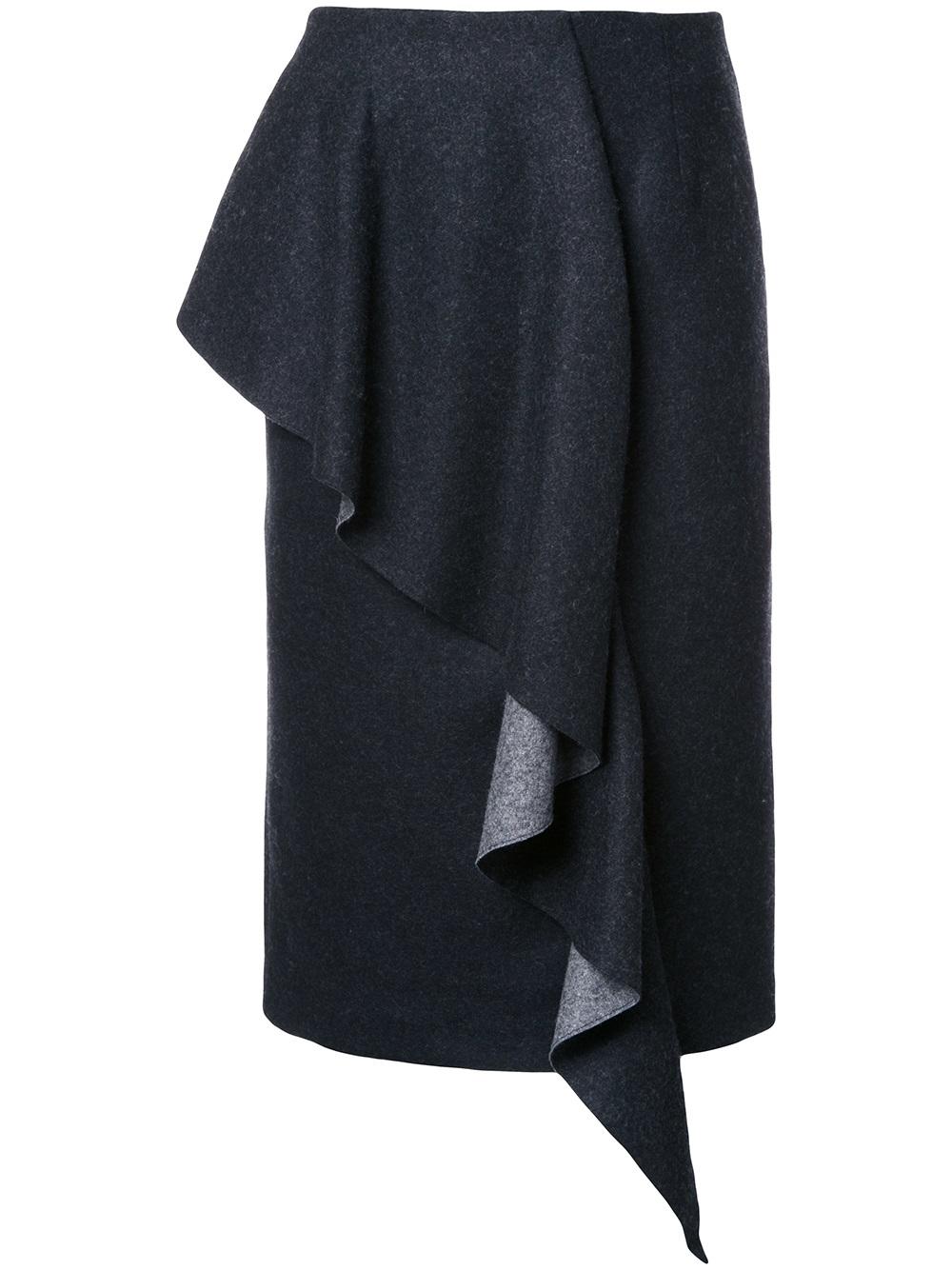 - Le Ciel Bleu 灰色 羊毛混纺 荷叶边细节半身裙。