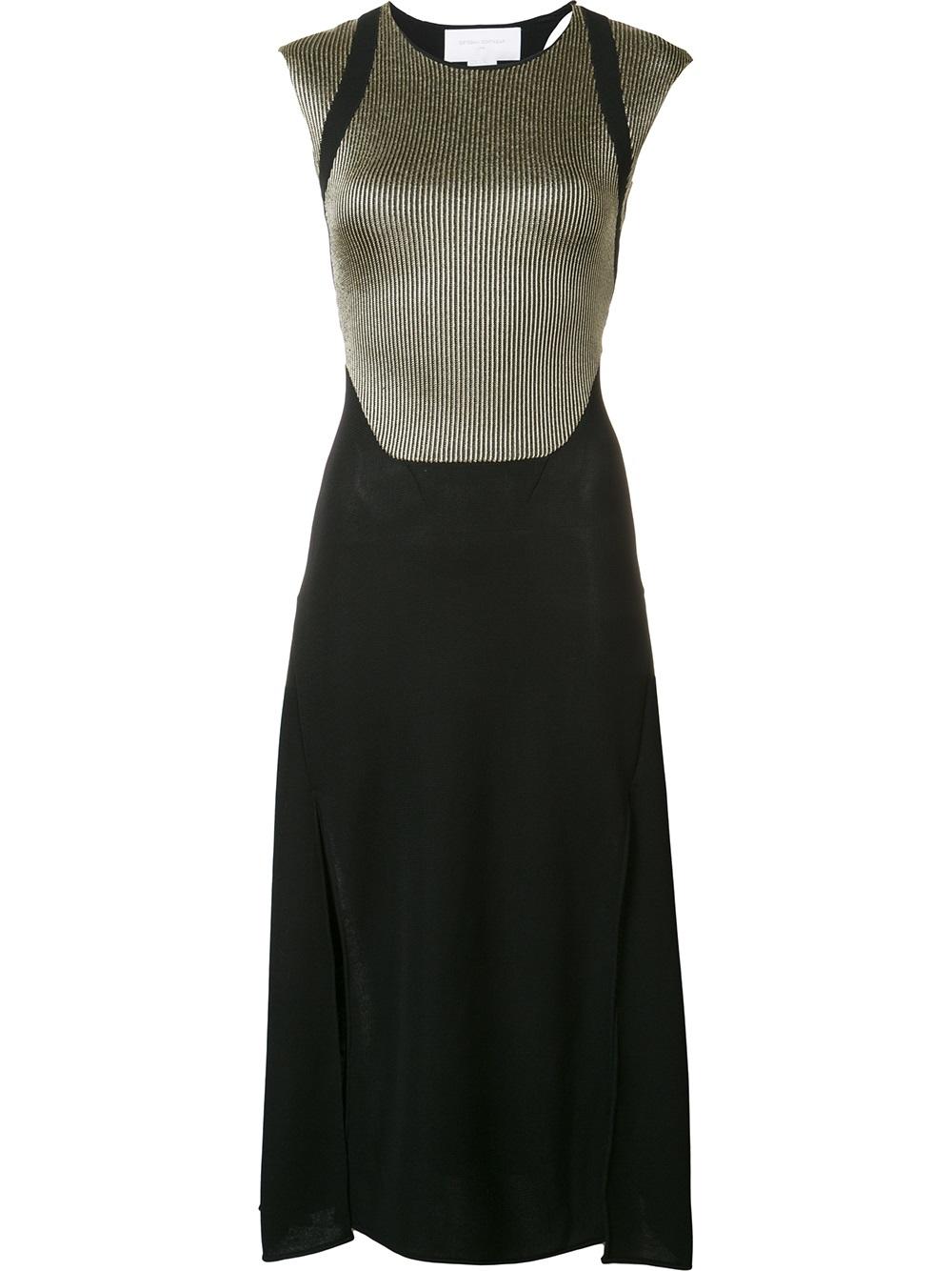 - Black and gold-tone ribbed contrast top dress from Esteban Cortazar.