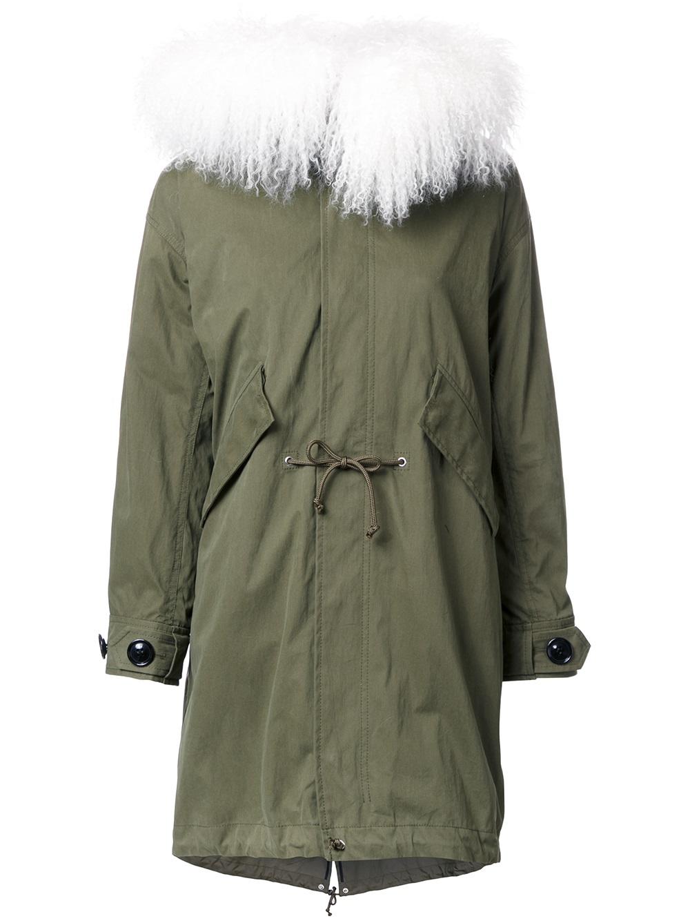 - Le Ciel Bleu 军绿色 全棉 皮草领派克大衣。