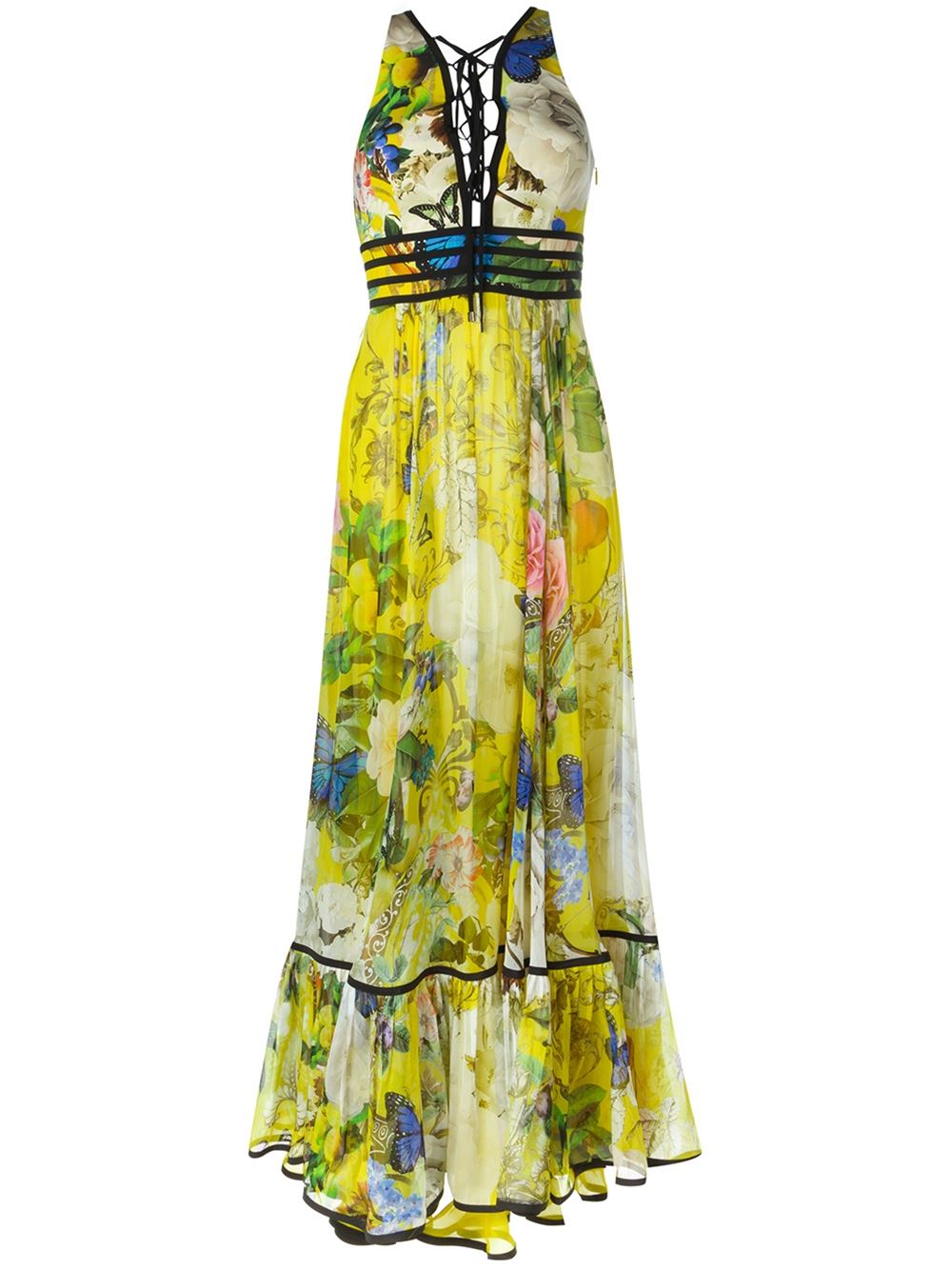 - Roberto Cavalli 多色 丝绸 超长花卉印花连衣裙。