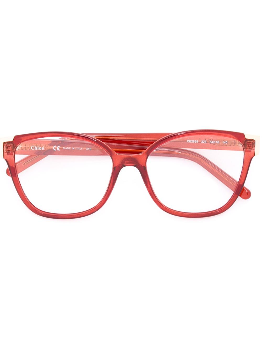 - Chloé (寇依) 红色 醋酸纤维与金属 经典方框眼镜。 尖角尾镜腿。请注意,这件商品附带保护壳。