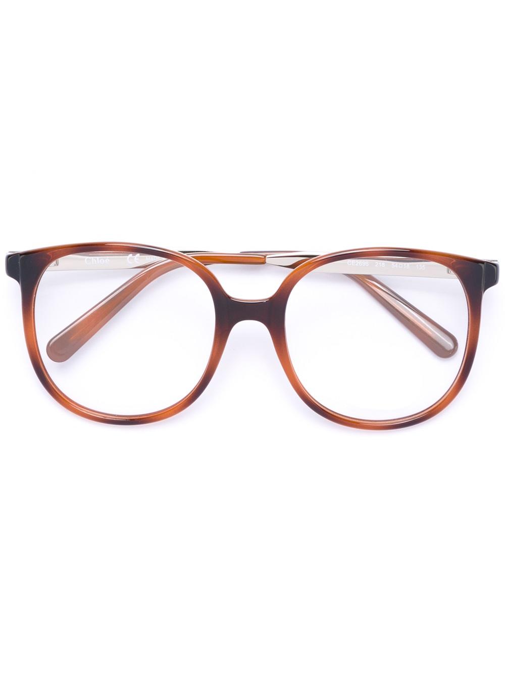- Chloé (寇依) 金色 醋酸纤维与金属 玳瑁纹椭圆框眼镜。 方形镜框, 银色五金配件, 尖角尾镜腿。请注意,这件商品附带保护壳。