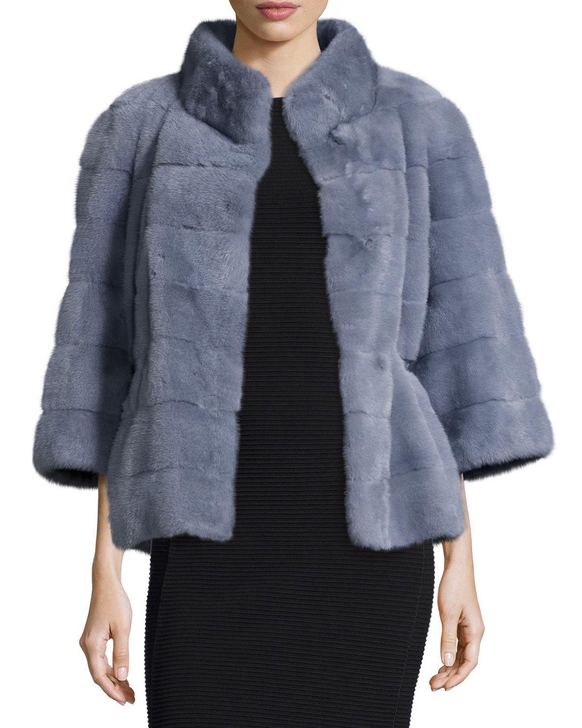 Gorski Horizontal Mink-Fur Jacket, Dove Gray