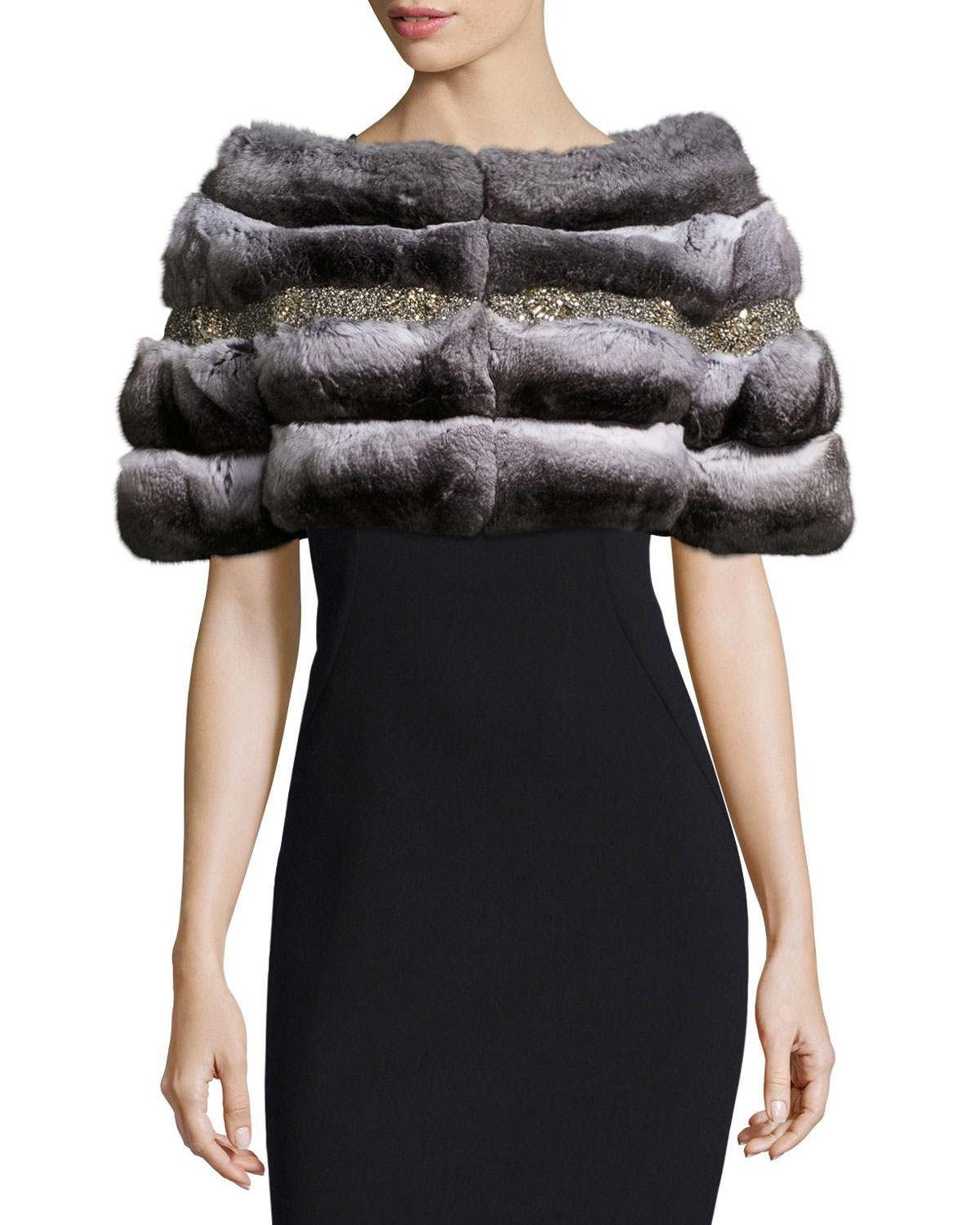 Lola Chinchilla Crystal-Stripe Capelet, Gray