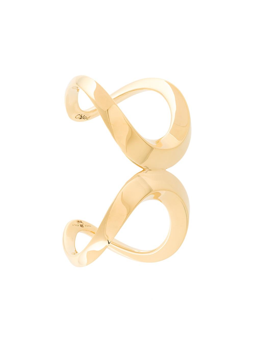 - Gold-tone twist cuff from Chloé featuring an open design and a slip-on style.