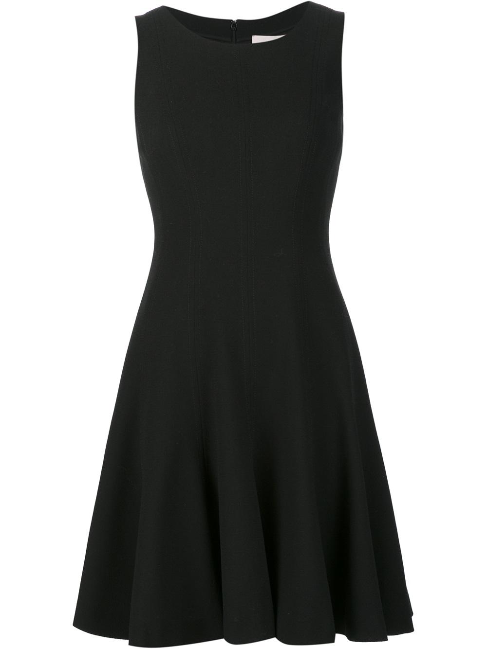 - Carolina Herrera 黑色 初剪羊毛 伞形连衣裙。 圆领, 后置拉链, 无袖设计, 伞状半身裙, 短款。