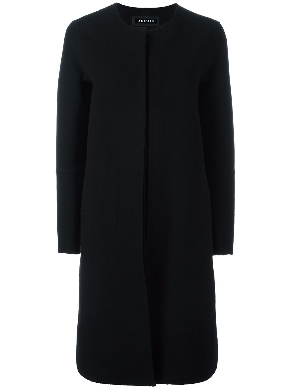 - AHIRAIN 黑色 初剪羊毛与羊绒混纺 单排扣大衣。