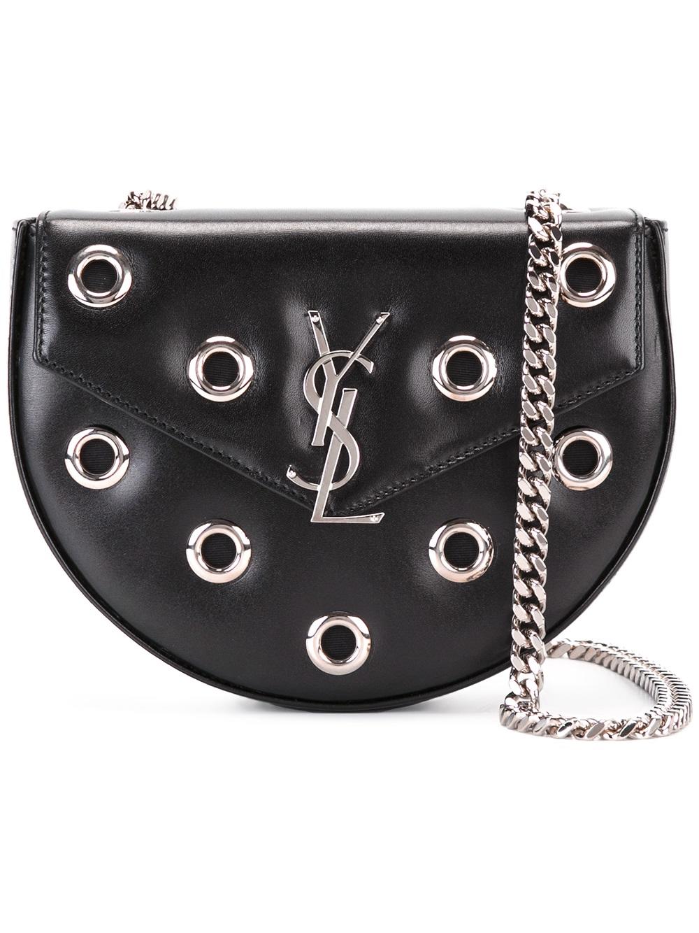 - Saint Laurent (圣罗兰) 黑色 牛皮 'Bubble Monogram'斜挎包。 搭链肩带, 银色五金配件, 正面标志贴, 饰扣眼, 翻盖饰有插入式的摁扣, 内置贴袋, 内置标牌。