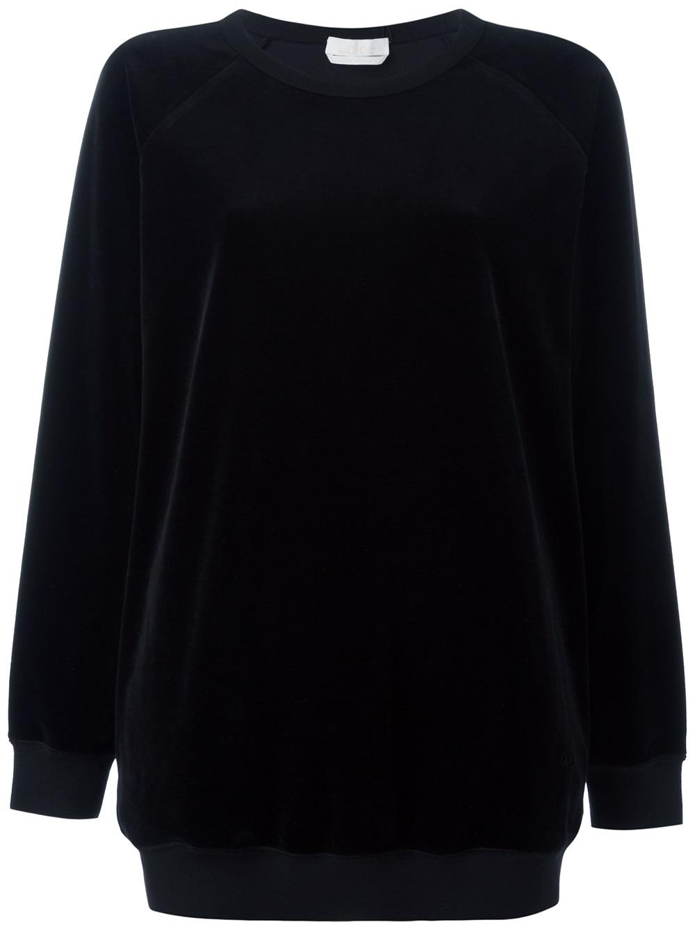 - Black cotton blend velvet sweatshirt from Chloé featuring a round neck, an oversized fit, ribbed trimming, long length raglan sleeves and a straight hem.