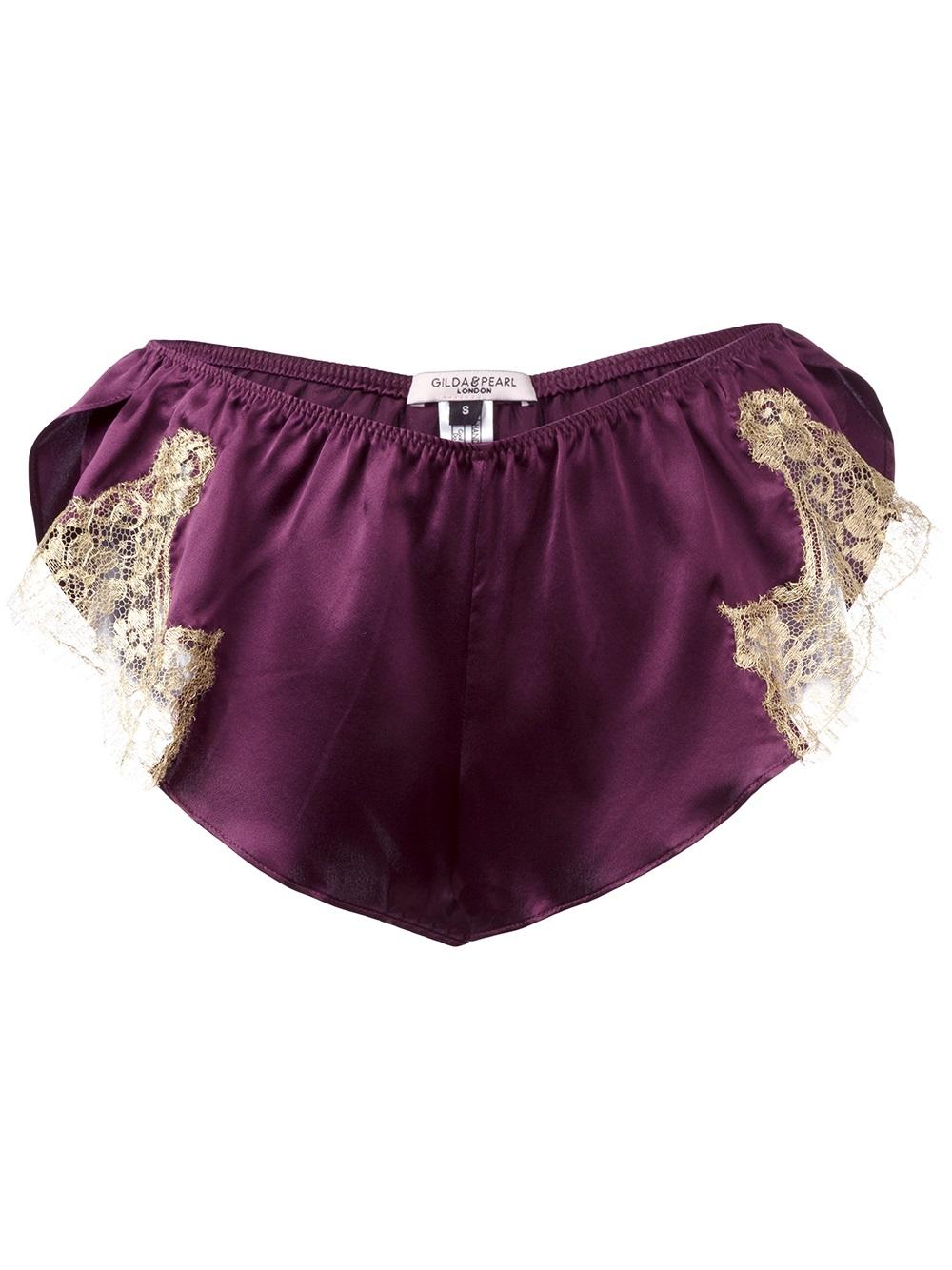 - Gilda & Pearl 红色与金色 丝绸混纺 'Gina Tap Pant'睡衣短裤。试穿贴身内衣时,请穿着于自身衣物之外。