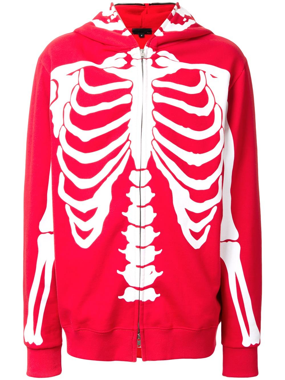 - 99% Is 红色 全棉 骷髅头拉链连帽夹克。