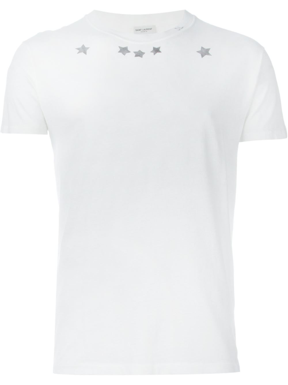 - Saint Laurent 白色 全棉 星星印花T恤。 圆领, 短袖, 平直下摆。