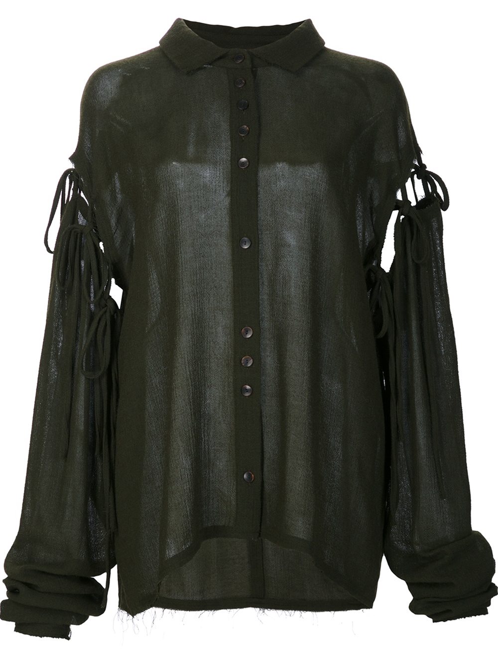 - Damir Doma 深苔绿色 初剪羊毛混纺 'Strauss'绑带细节竖排扣衬衫。