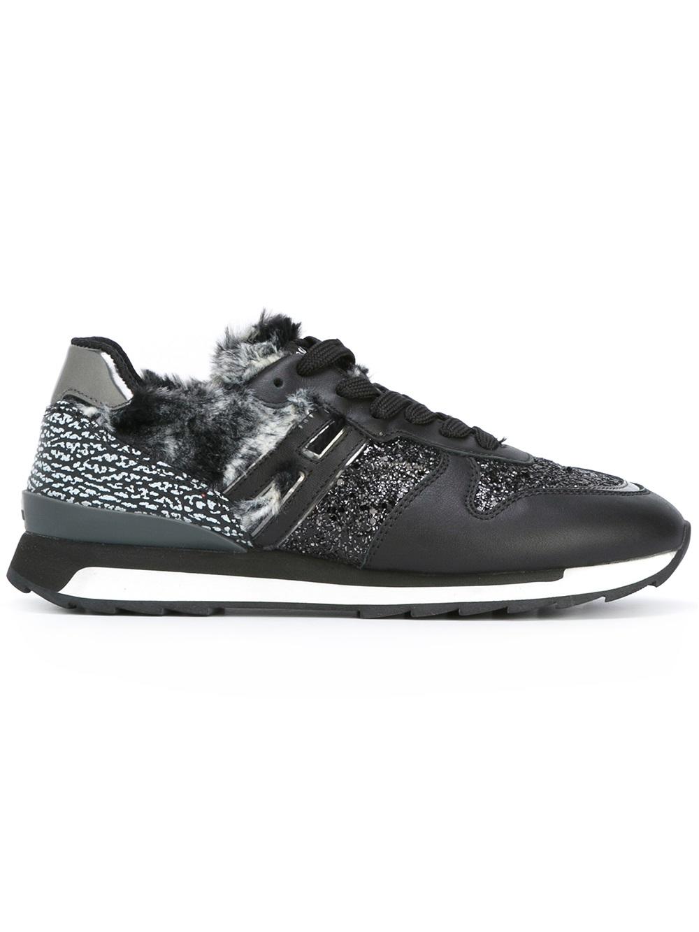 - Hogan Rebel 深灰色 牛皮与兔皮毛 对比拼接运动鞋。