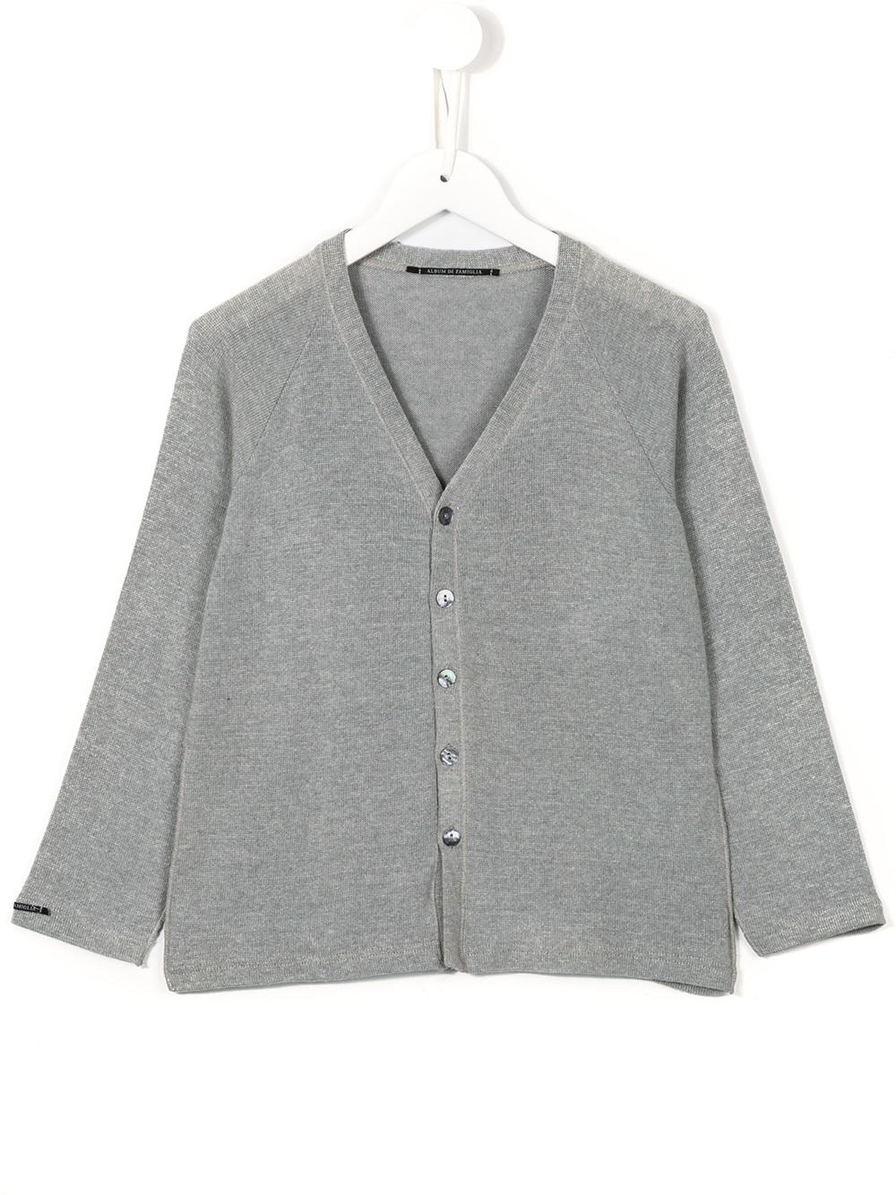 - Album Di Famiglia 灰色 安哥拉羊毛混纺 v领开衫。 正面纽扣, 插肩式长袖, 平直下摆。
