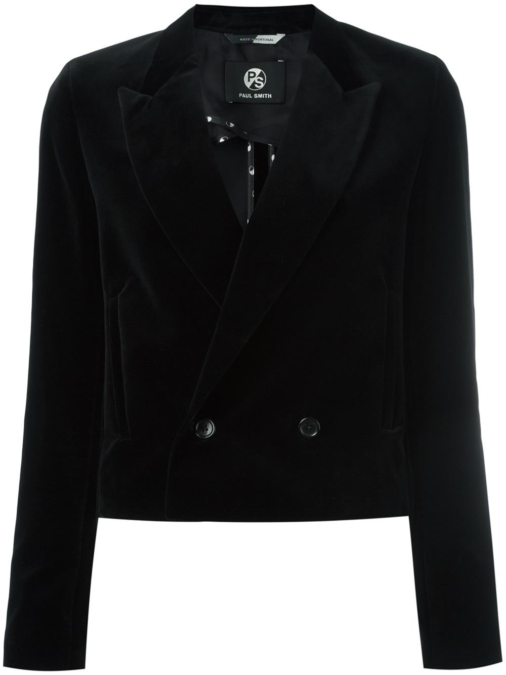 - Black cotton blend cropped velvet blazer from Ps By Paul Smith.