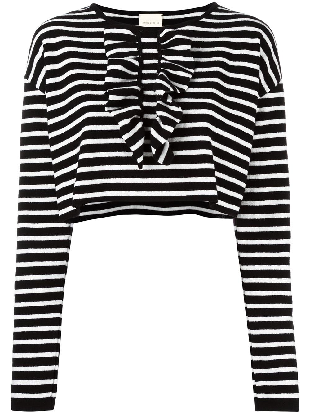 - Black cotton-merino blend striped crop jumper from Circus Hotel.