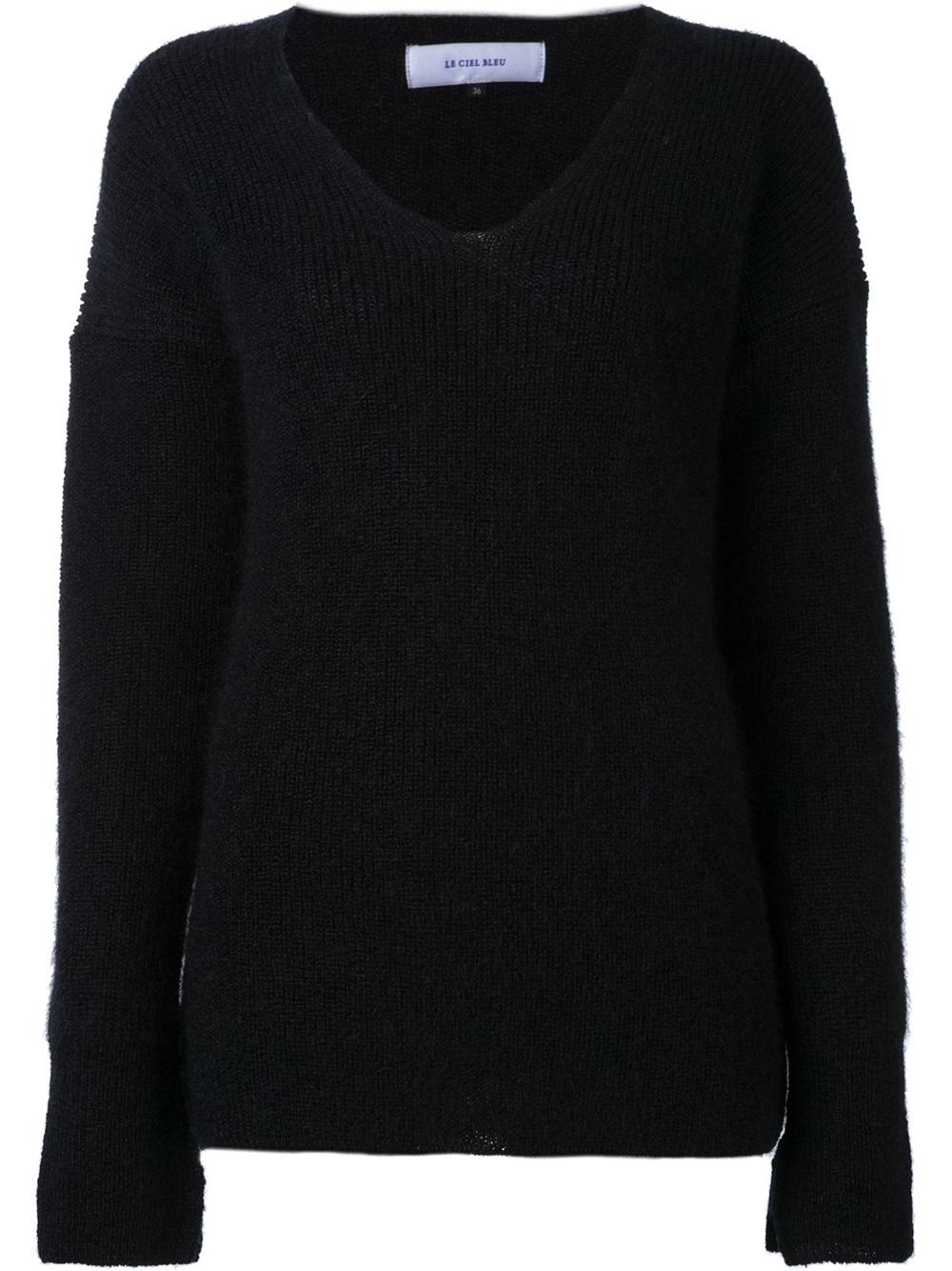 - Le Ciel Bleu 海军蓝 马海毛 v领毛衣。