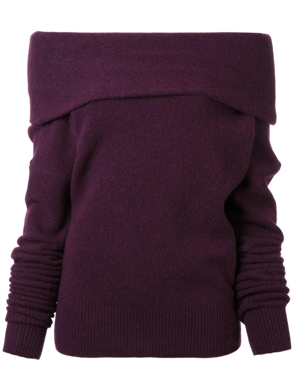 - Le Ciel Bleu 深紫色 羊毛 露肩毛衣。