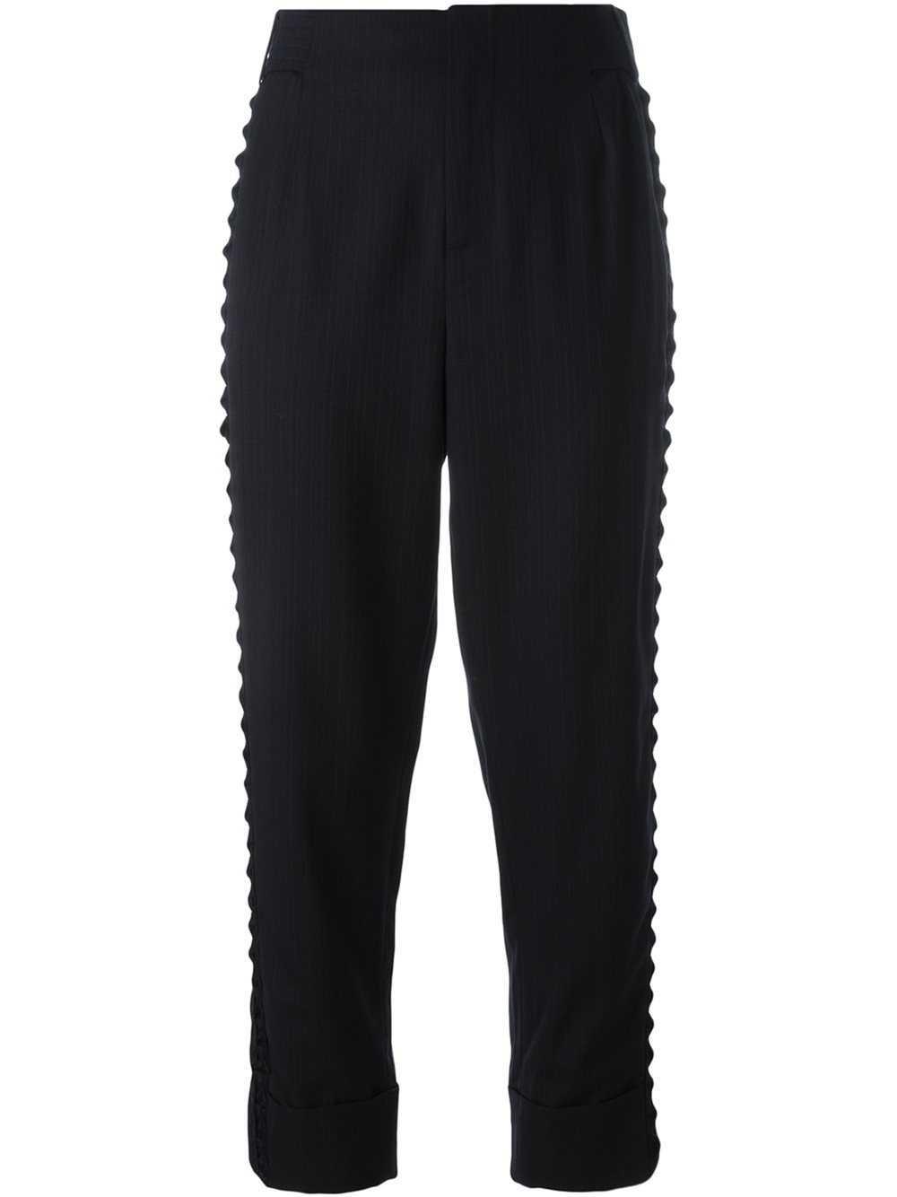 - A.F.Vandevorst 深蓝色 羊毛 细条纹九分裤。