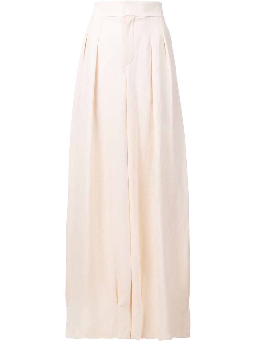 - Nude high waisted palazzo pants from Chloé featuring a zip fly, pleated details, a wide leg, a regular length and rear welt pockets.
