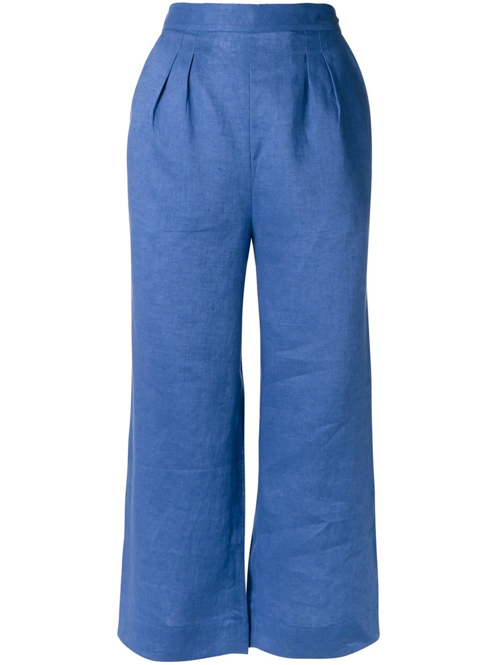 - Blue linen high waisted culottes from Andrea Marques featuring side pockets and a zip fastening.