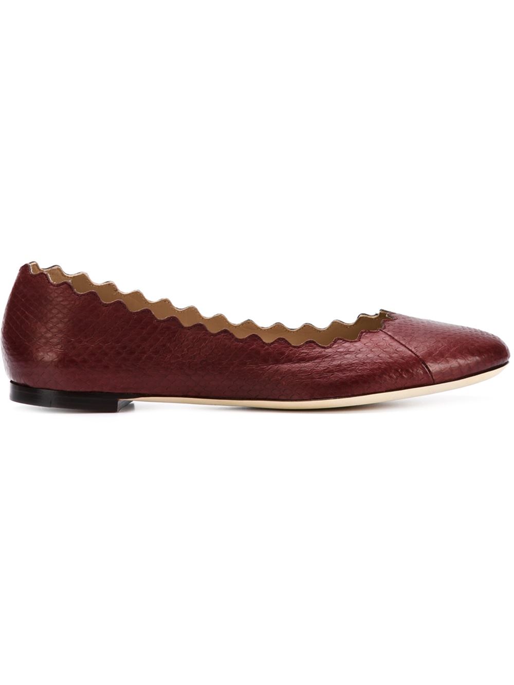 - Chloé 深红色 蛇皮 'Lauren'芭蕾舞平底鞋。 圆头, 鞋垫饰有品牌浮雕, 平底。请注意,这件商品不能寄到美国以外。
