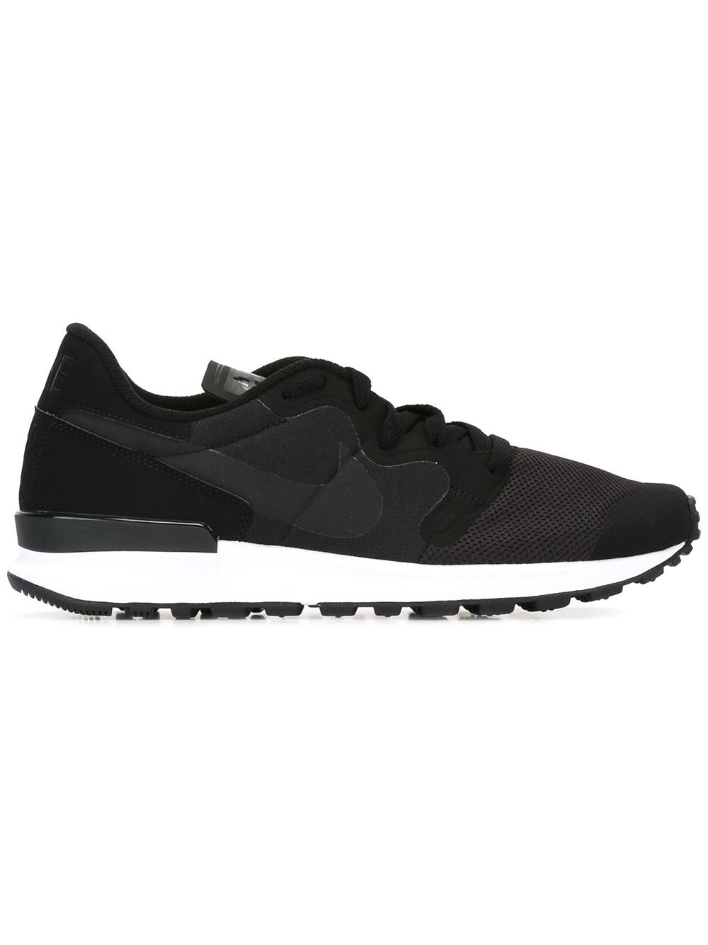 - Black cotton and faux leather 'Air Berwuda' sneakers from Nike featuring a round toe, a lace-up front fastening, a logo patch at the tongue, a branded insole, a padded ankle, a signature Nike swoosh, branded heel counter and a rubber sole.
