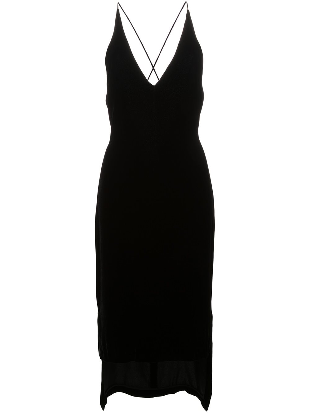 - Dion Lee 黑色 丝绸 'Fine Line'吊带连衣裙。