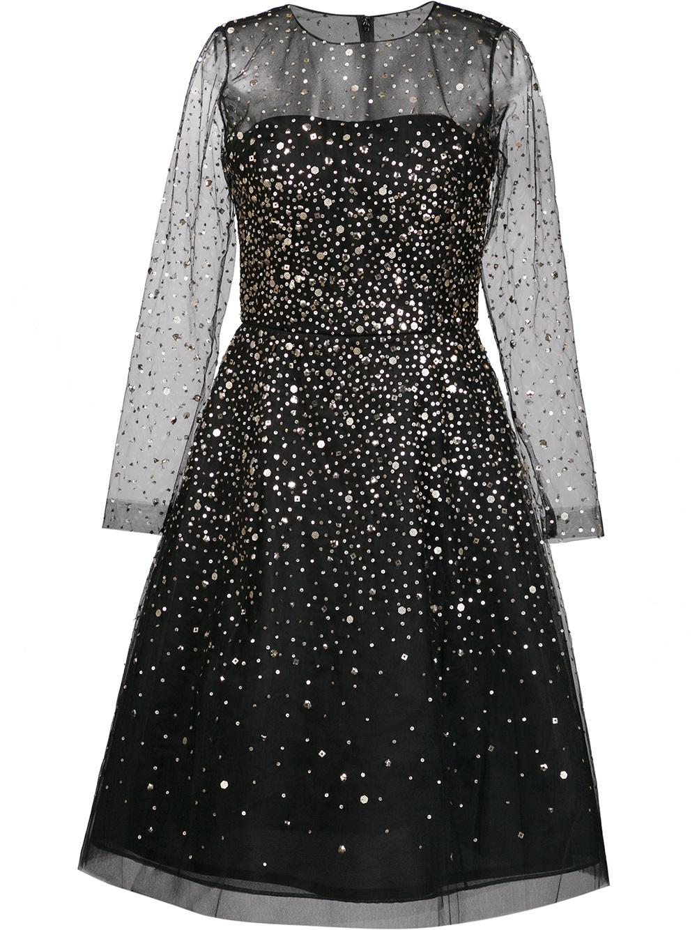 - Black silk gold-tone sequined flared dress from Oscar de la Renta.