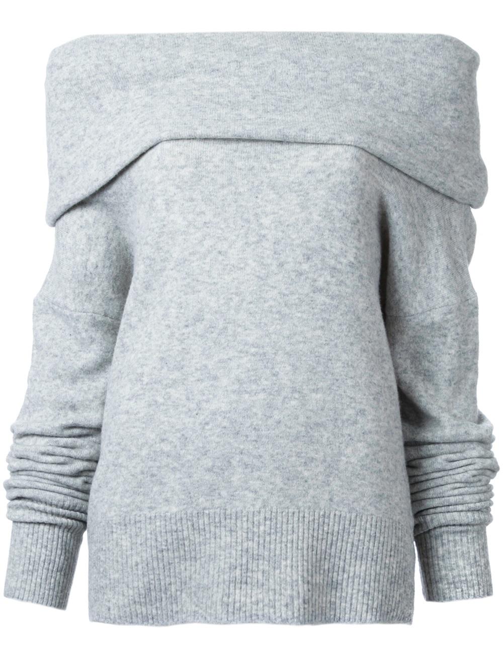 - Le Ciel Bleu 浅灰色 羊毛 露肩毛衣。