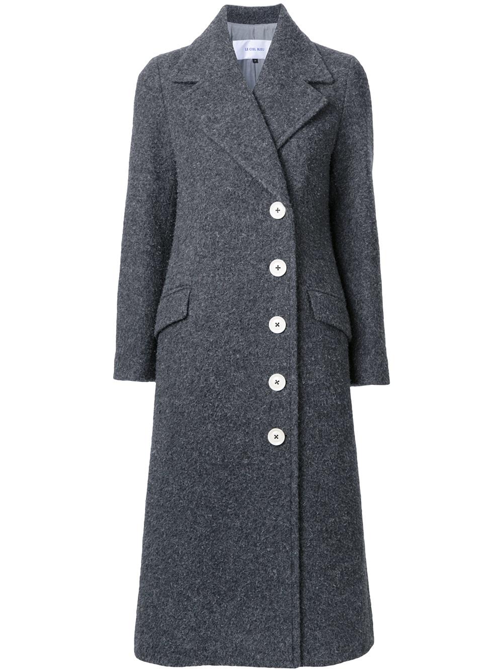 - Le Ciel Bleu 灰色 羊毛 单排扣大衣。