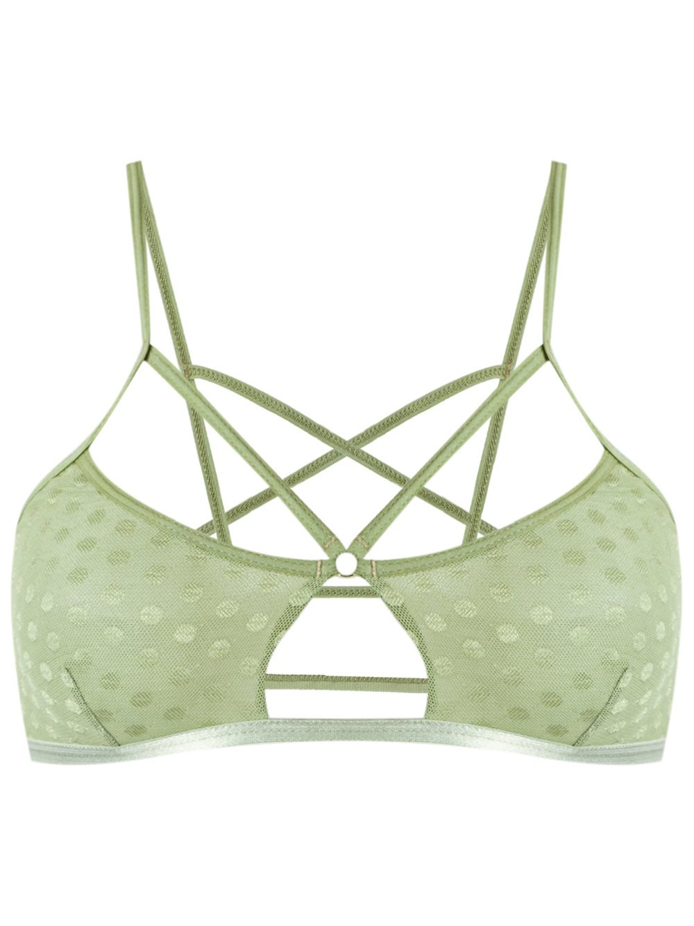 - Light green tulle bra from Andrea Bogosian featuring a strappy design.