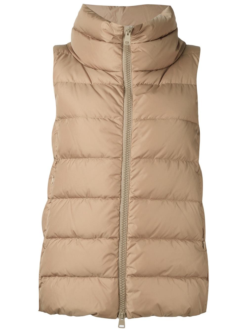- Brown feather down padded vest from Herno.