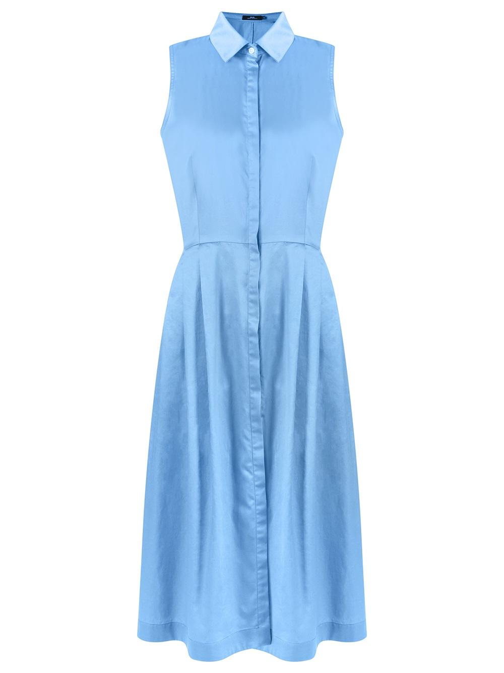 - Blue cotton midi shirt dress from Andrea Marques featuring a front button fastening, a sleeveless design and pleated details.