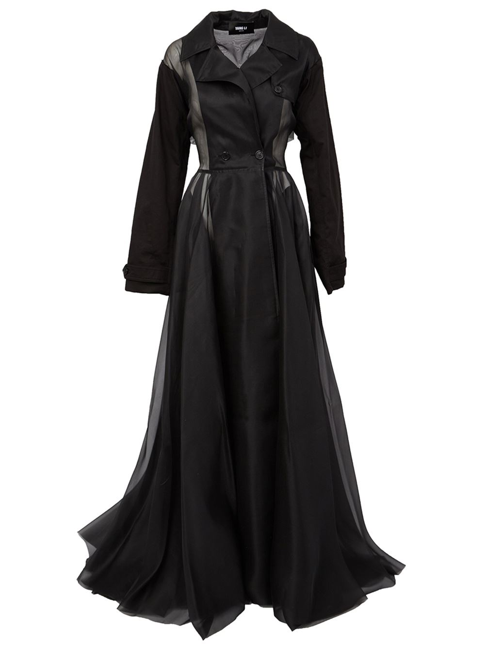 - Yang Li 黑色 丝绸与棉质 长款连衣裙外套。