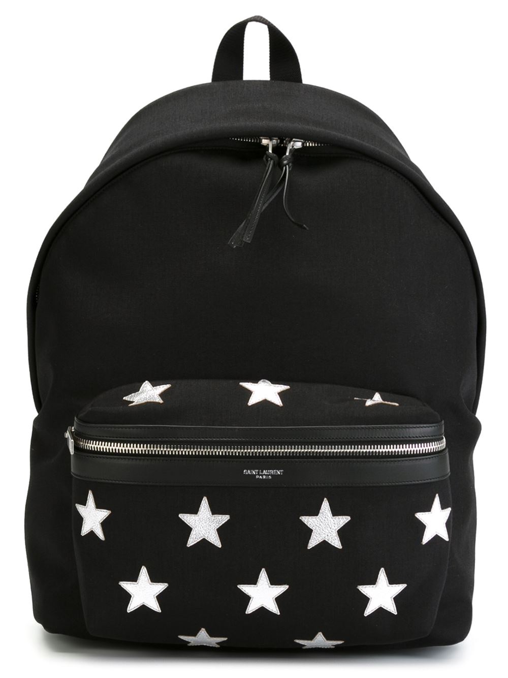 - Saint Laurent 黑色 全棉 'Hunting'背包。 顶部有拉链, 正面拉链口袋, 顶部有一个手柄, 可调整肩带, 正面饰有浮雕品牌标记。