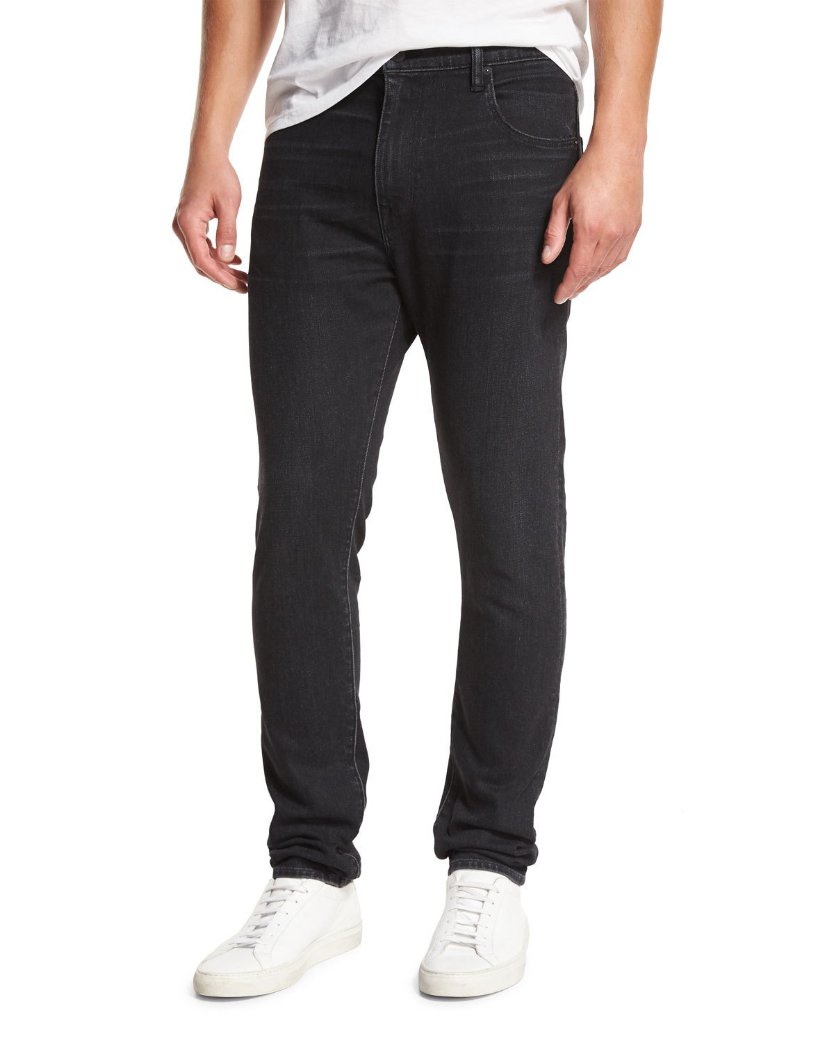 - Vince denim jeans with subtle whiskering and fading.