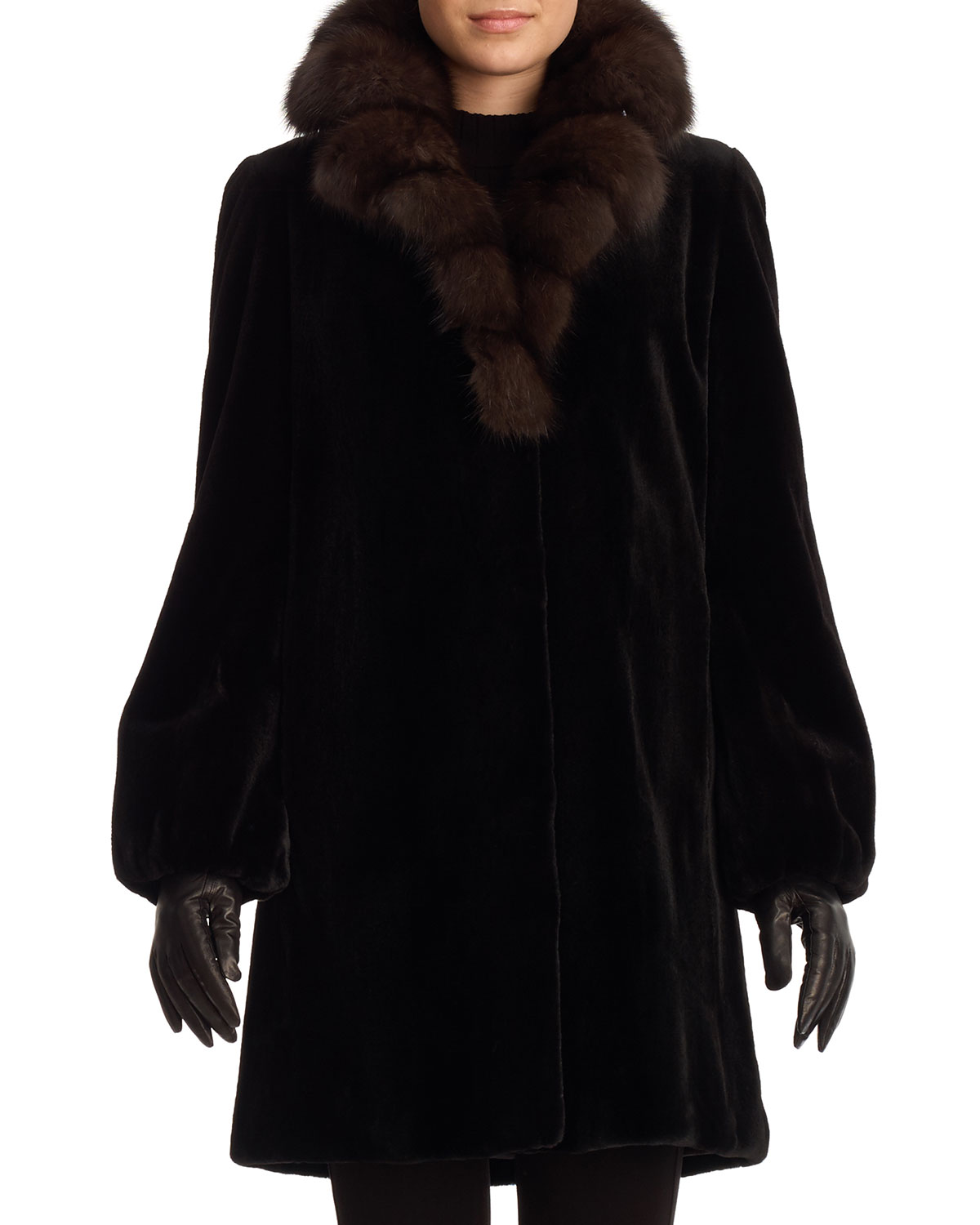 Gorski Sable-Collar Mink-Fur Stroller Coat, Black