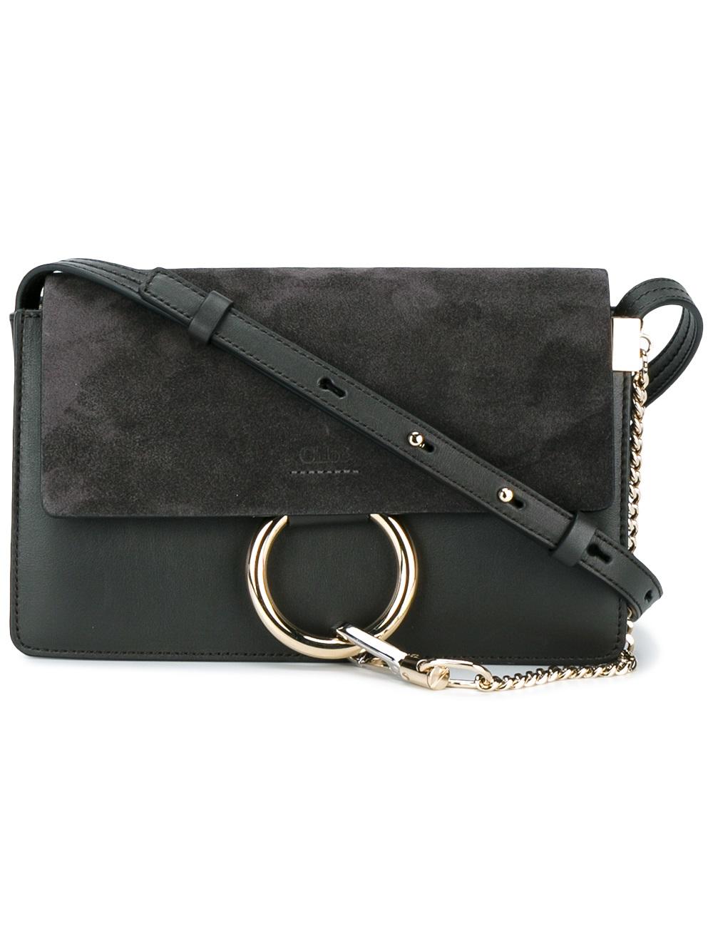 - Grey leather and suede 'Small Faye' shoulder bag from Chloé.