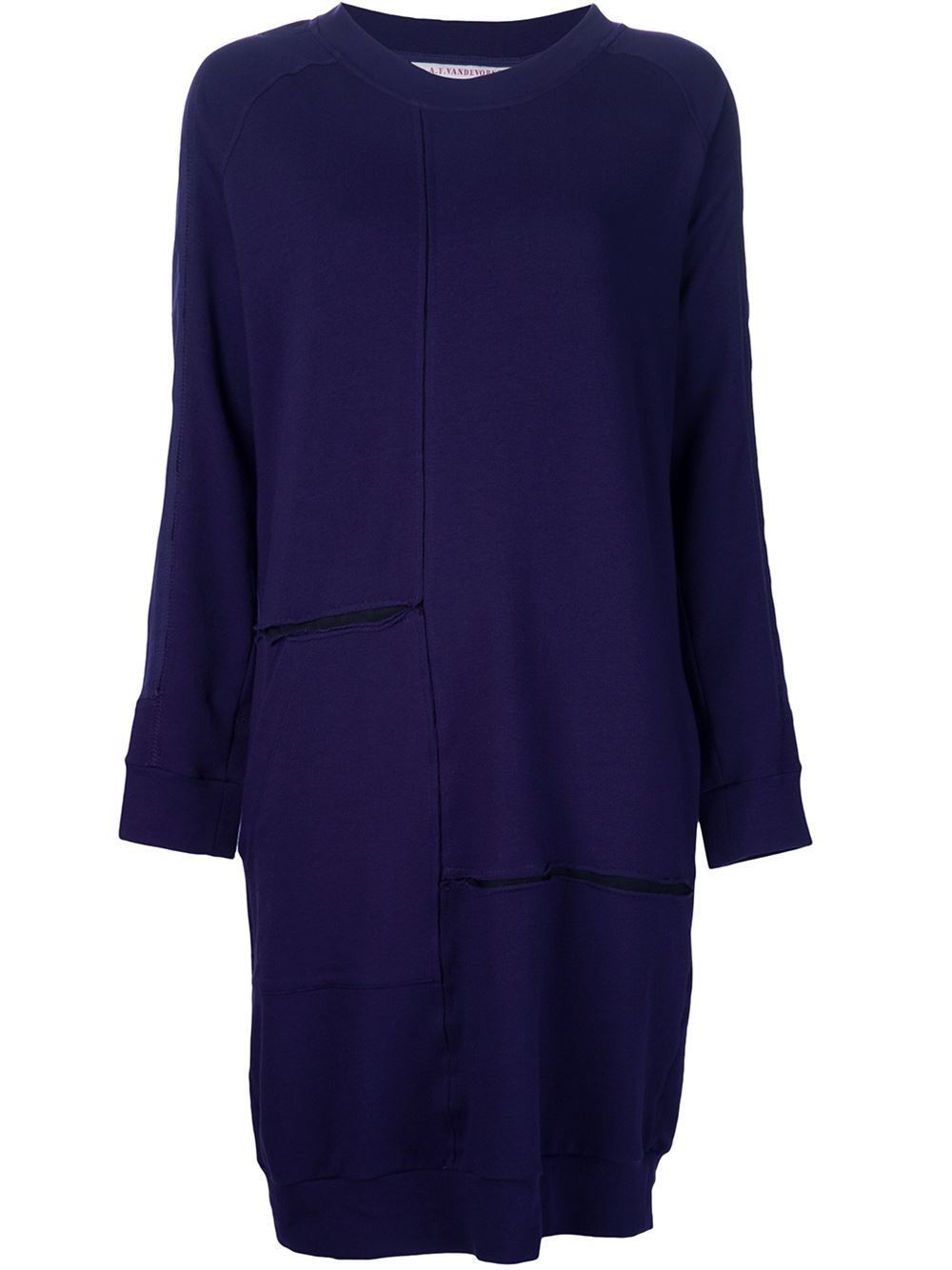 - A.F.Vandevorst 海军蓝 弹性棉质 拼接连衣裙。