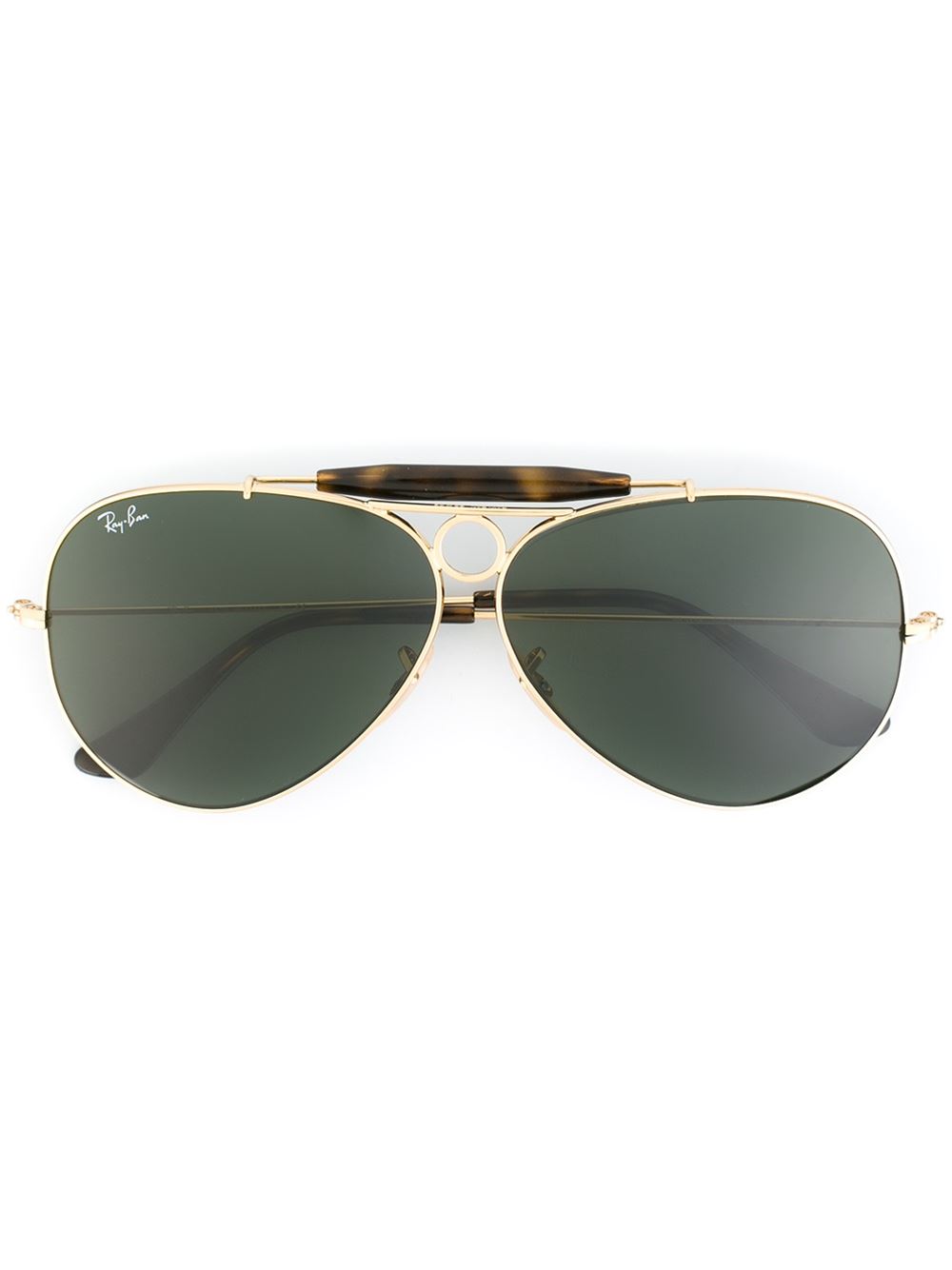 - Ray Ban 金色 金属 飞行员风太阳眼镜。 有色镜片, 飞行员镜框, 弧角尾镜腿, 玳瑁纹细节。请注意,这件商品附带保护壳。