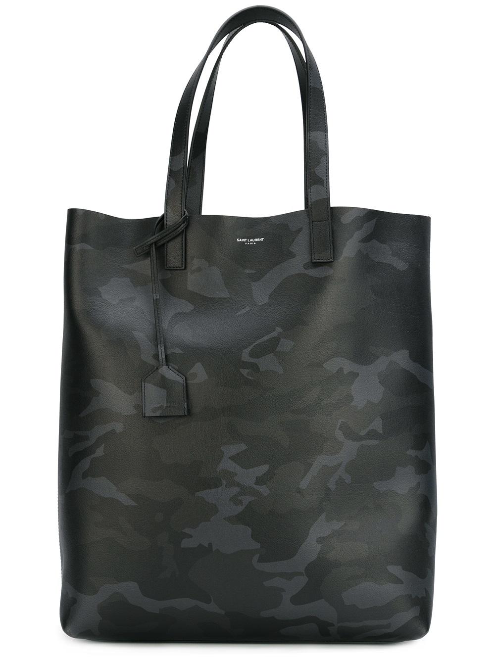 - Made in Italy from durable calf leather, Saint Laurent’s camouflage print shopping bag is the perfect choice for toting your everyday essentials around. Big enough to hold work folders and a laptop, it’s detailed with a detachable hanging key fob and a Saint Laurent branded detachable zipped pouch.