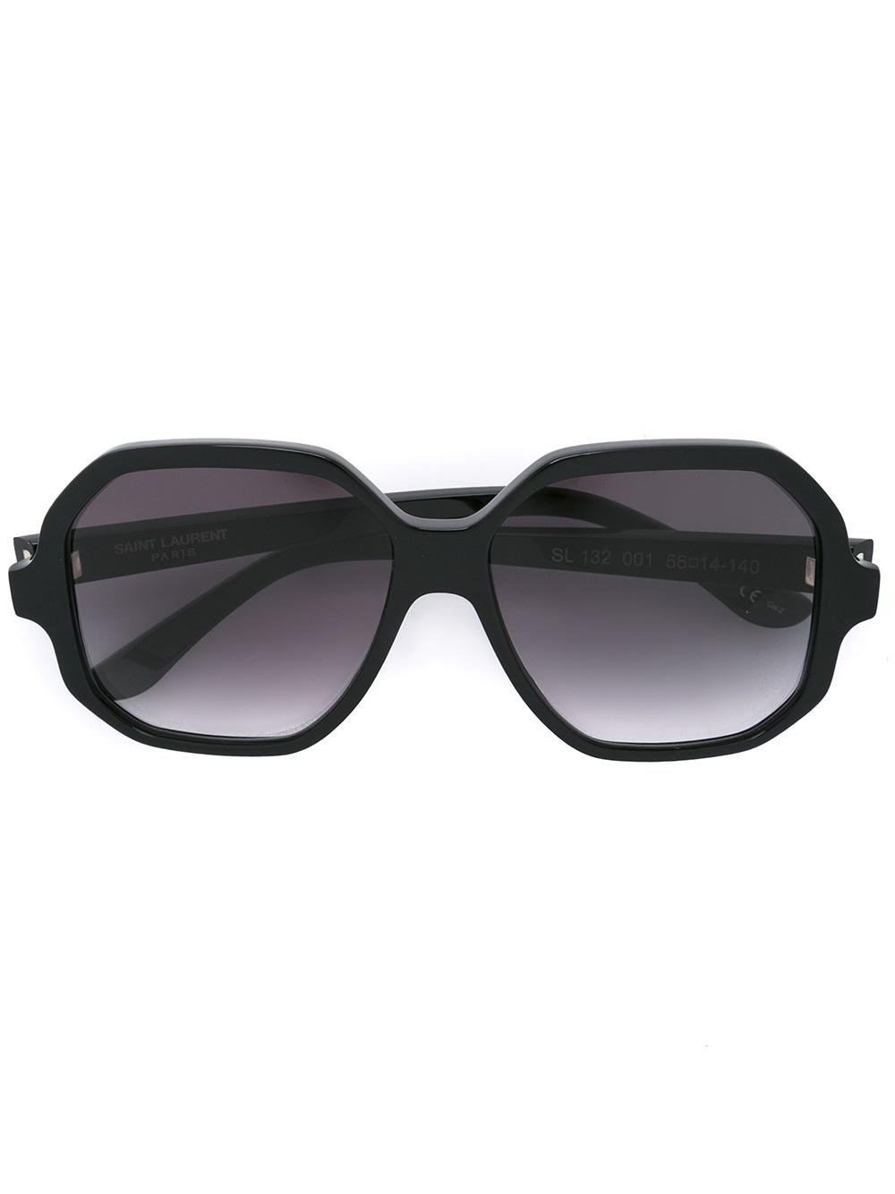 - Black acetate 'New Wave' sunglasses from Saint Laurent featuring oversized frames, gradient lenses, a logo at the temple and straight arms with angled tips. This item comes with a protective case.