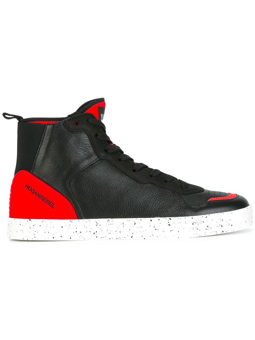 - Hogan Rebel 黑色与红色 牛皮 拼色高帮板鞋。
